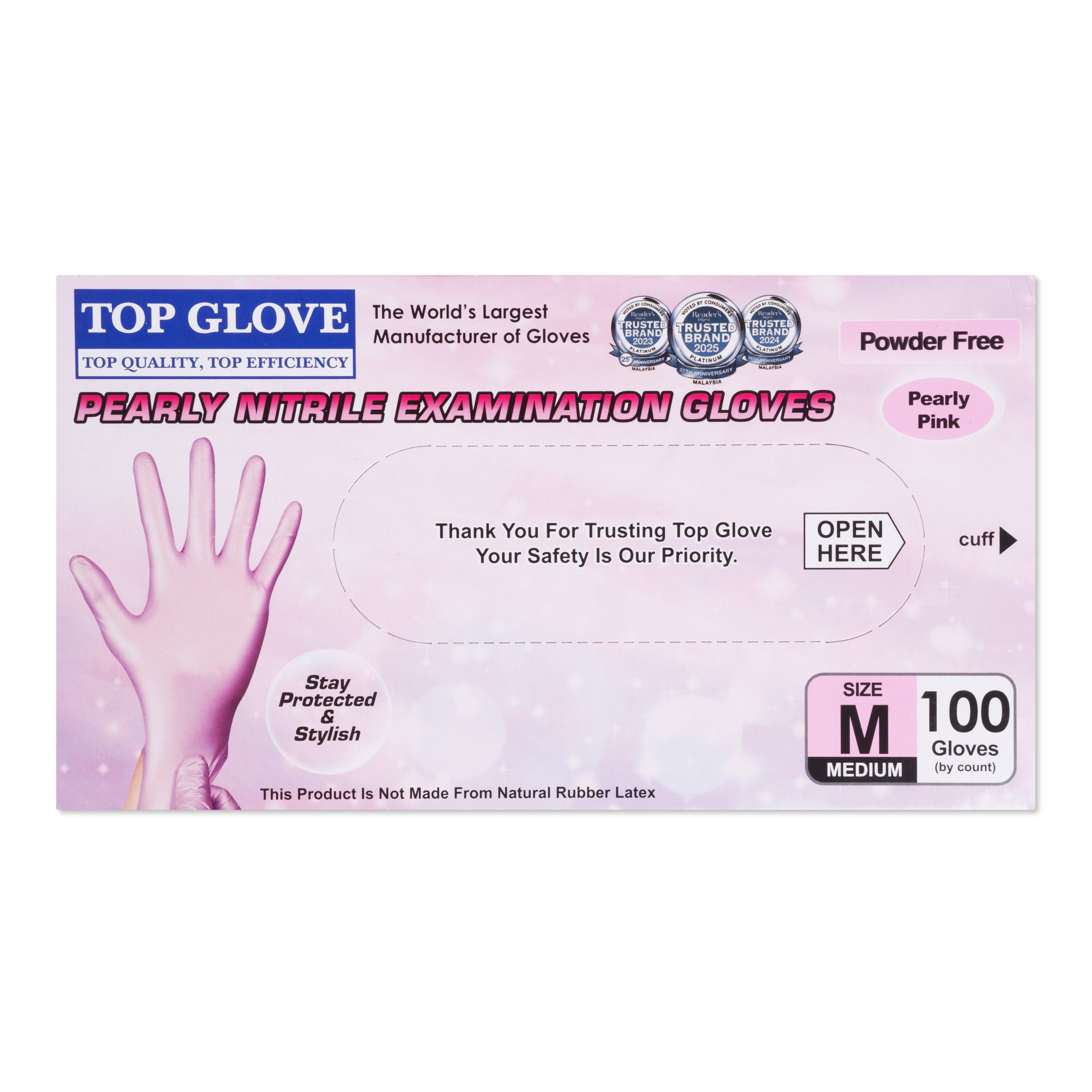 Diagnostické nitrilové rukavice medaSEPT Pearl Pink, bez pudru, perleťově růžové, velikost M, 100 ks