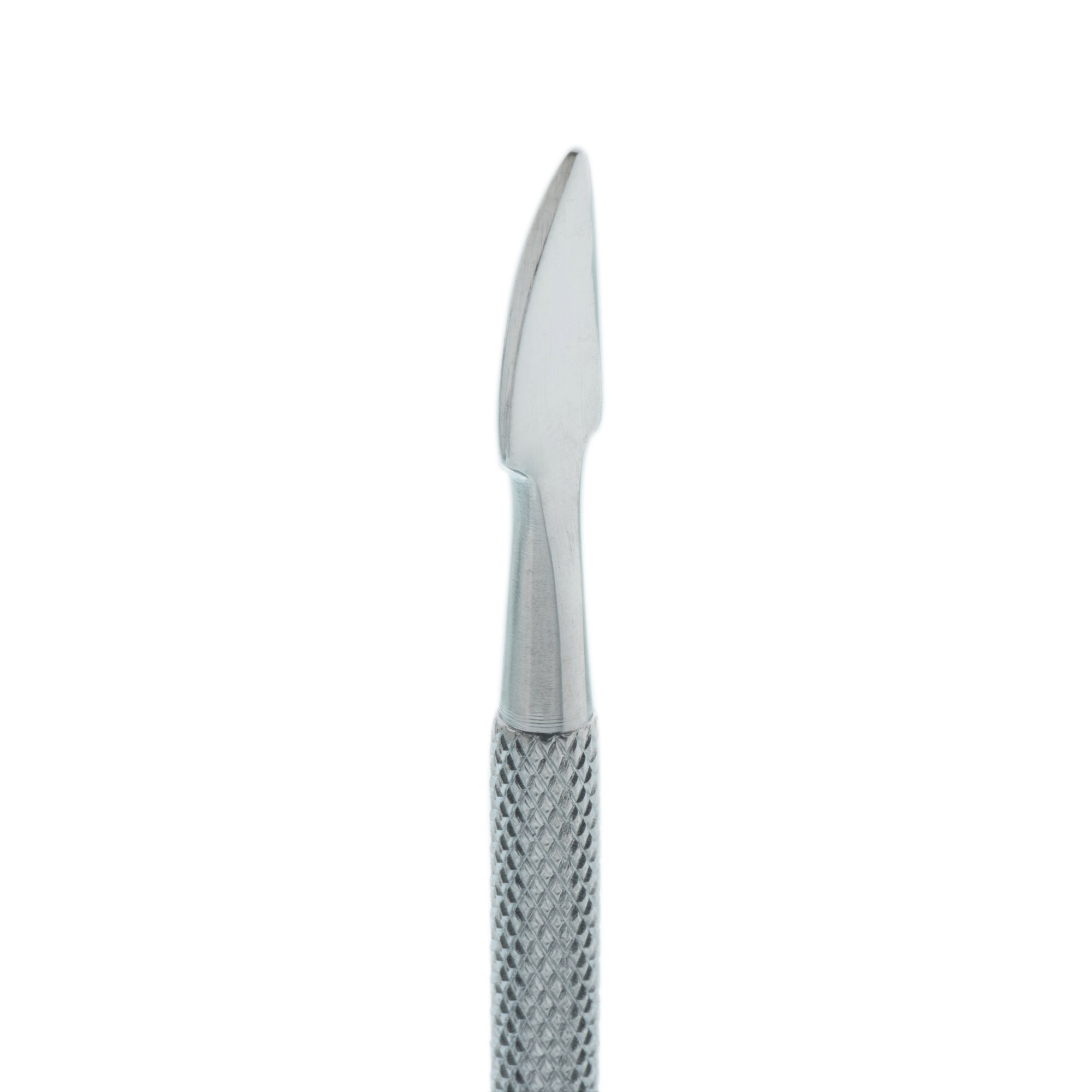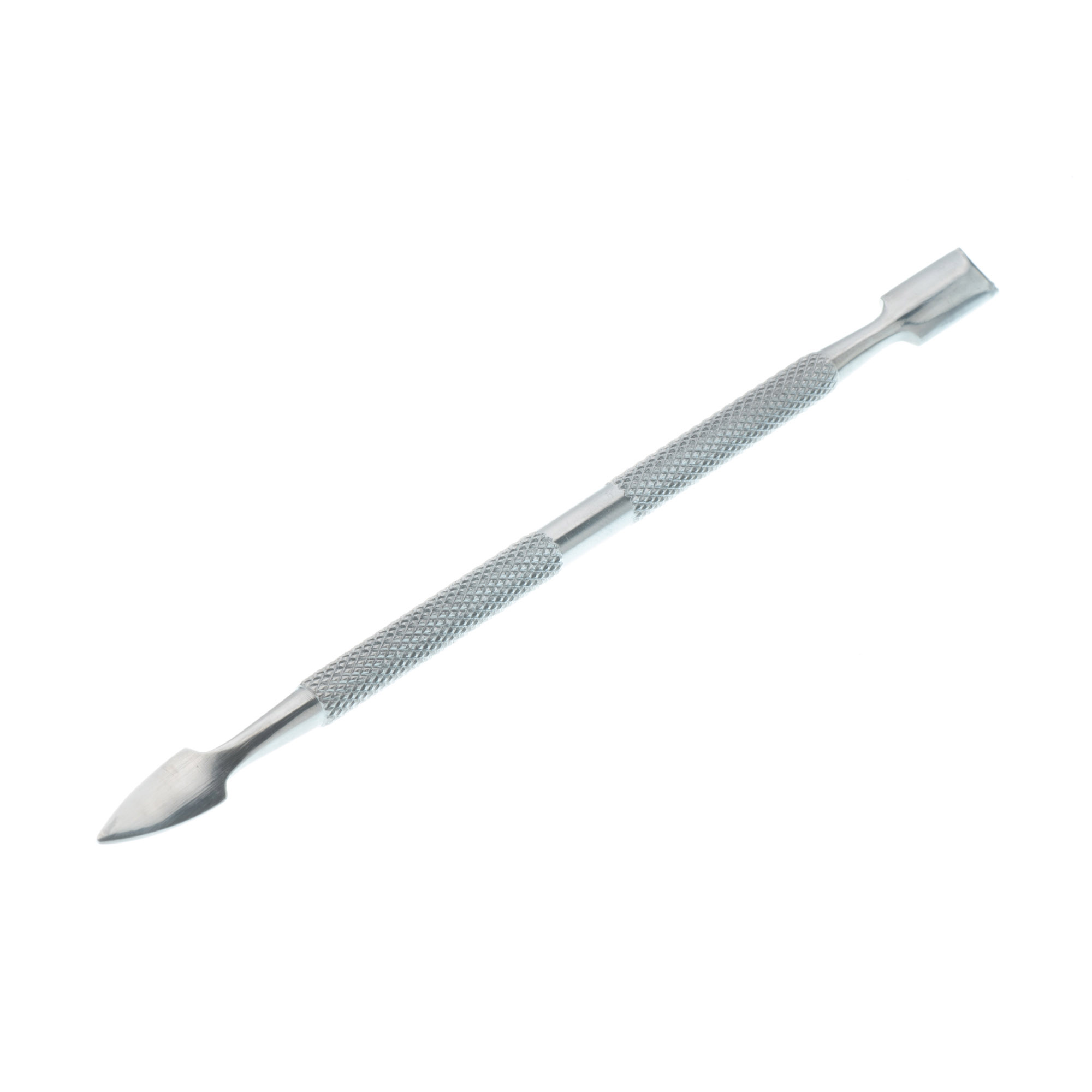 Metallisches Nagelhautwerkzeug zur präzisen Entfernung und zum Zurückschieben der Nagelhaut. Es verfügt über zwei unterschiedliche Spitzen — eine gebogene für das seitliche Entfernen der Nagelhaut und eine flache zum Zurückschieben Richtung Nagelmitte. Der ergonomisch geformte Griff sorgt für Komfort, Präzision und sicheres Arbeiten. Hergestellt aus rostfreiem Stahl, daher geeignet zur Sterilisation und Desinfektion.
