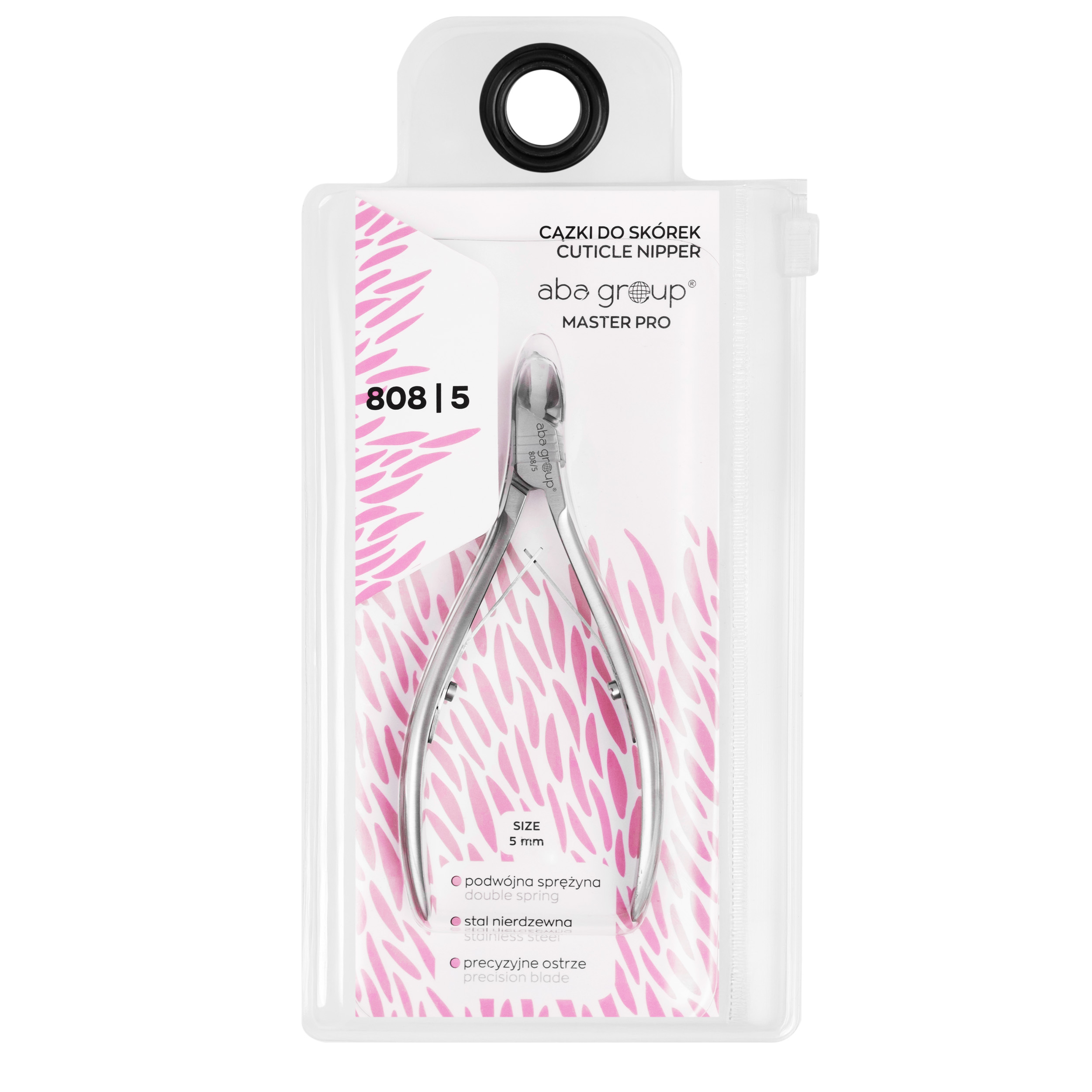 The Aba Group MASTER PRO 808/5 mm cuticle nippers are premium-quality tools designed for precise and safe cuticle removal. Equipped with 5 mm straight, angled cutting edges, they ensure a clean cut without damaging the nail plate.