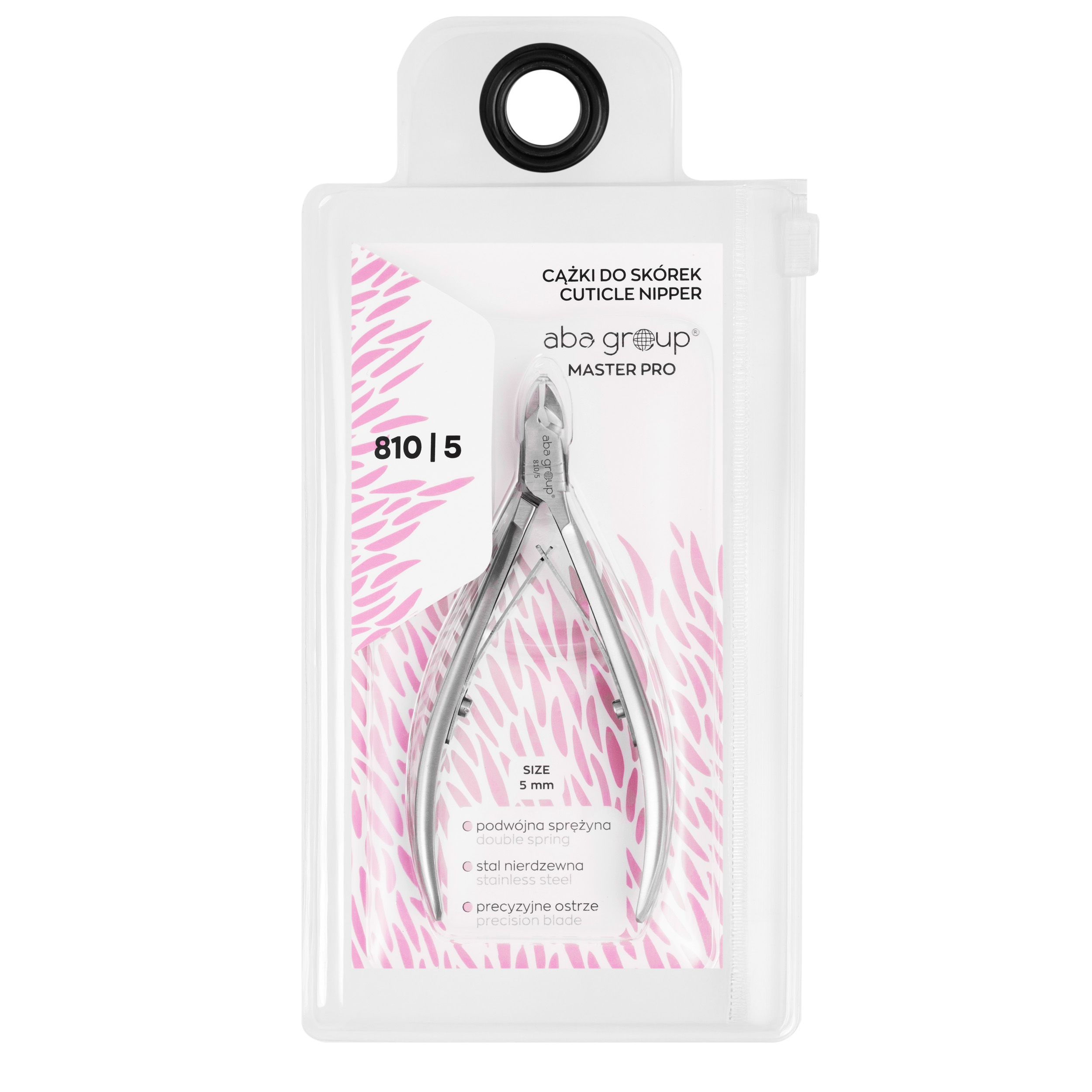 The Aba Group MASTER PRO 810/5 mm cuticle nippers are a specialized tool designed for nail stylists and professional beauty salons. Equipped with a 5 mm blade featuring straight, angled cutting edges and a heel tip, they ensure precise and safe cutting of even the thinnest cuticles.