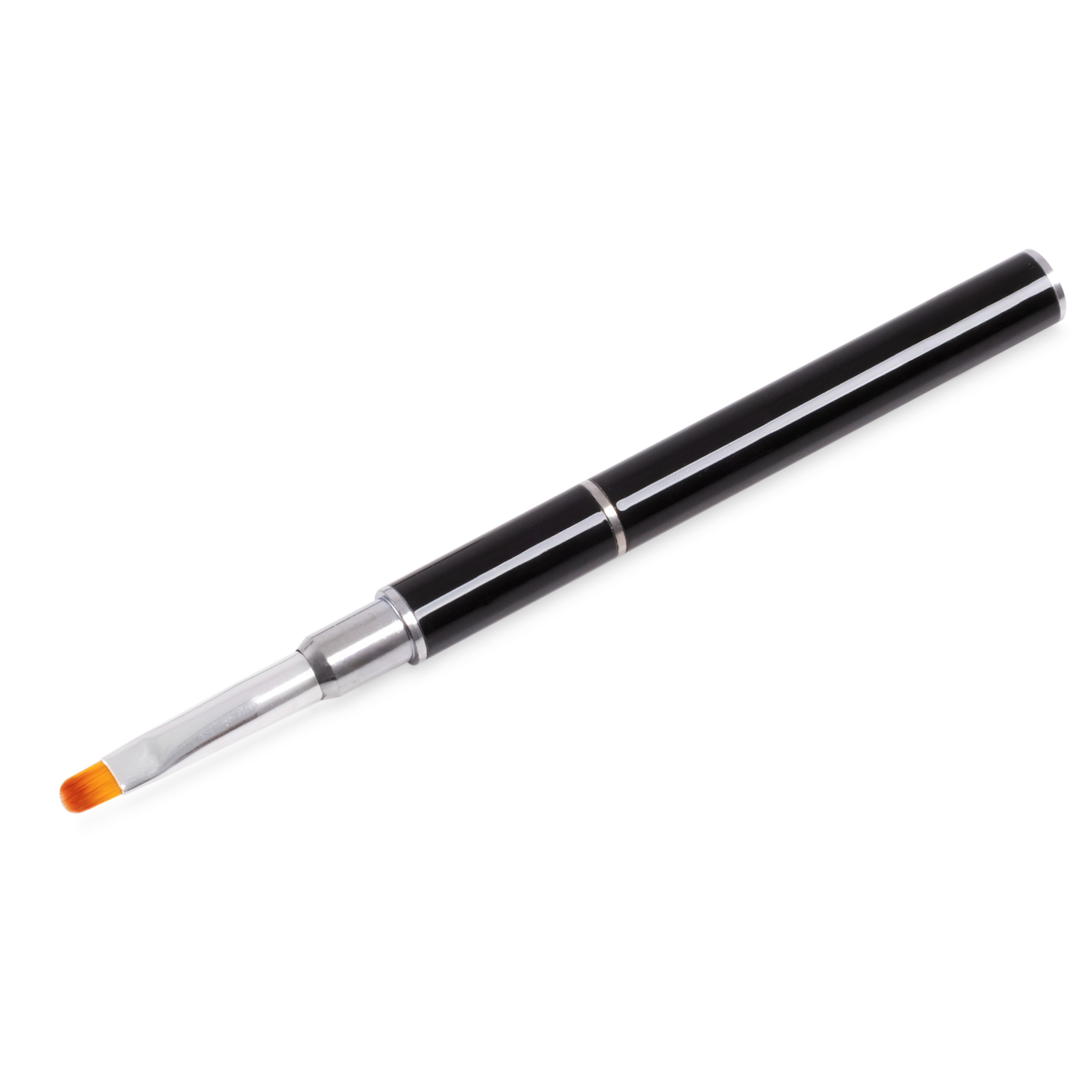 Nástroj s dvoma praktickými koncovkami, vďaka ktorému si ušetríte veľa času a práce. Z jednej strany sa nachádza najkvalitnejší štetec z prírodných vlasov určený na doplňovanie a nanášanie lakov na nechty alebo na prácu s gélom, a na druhej je špachtľa nevyhnutná na nanášanie akrylového gélu. Ochranný uzáver uľahčuje skladovanie a chráni vlasy pred poškodením.