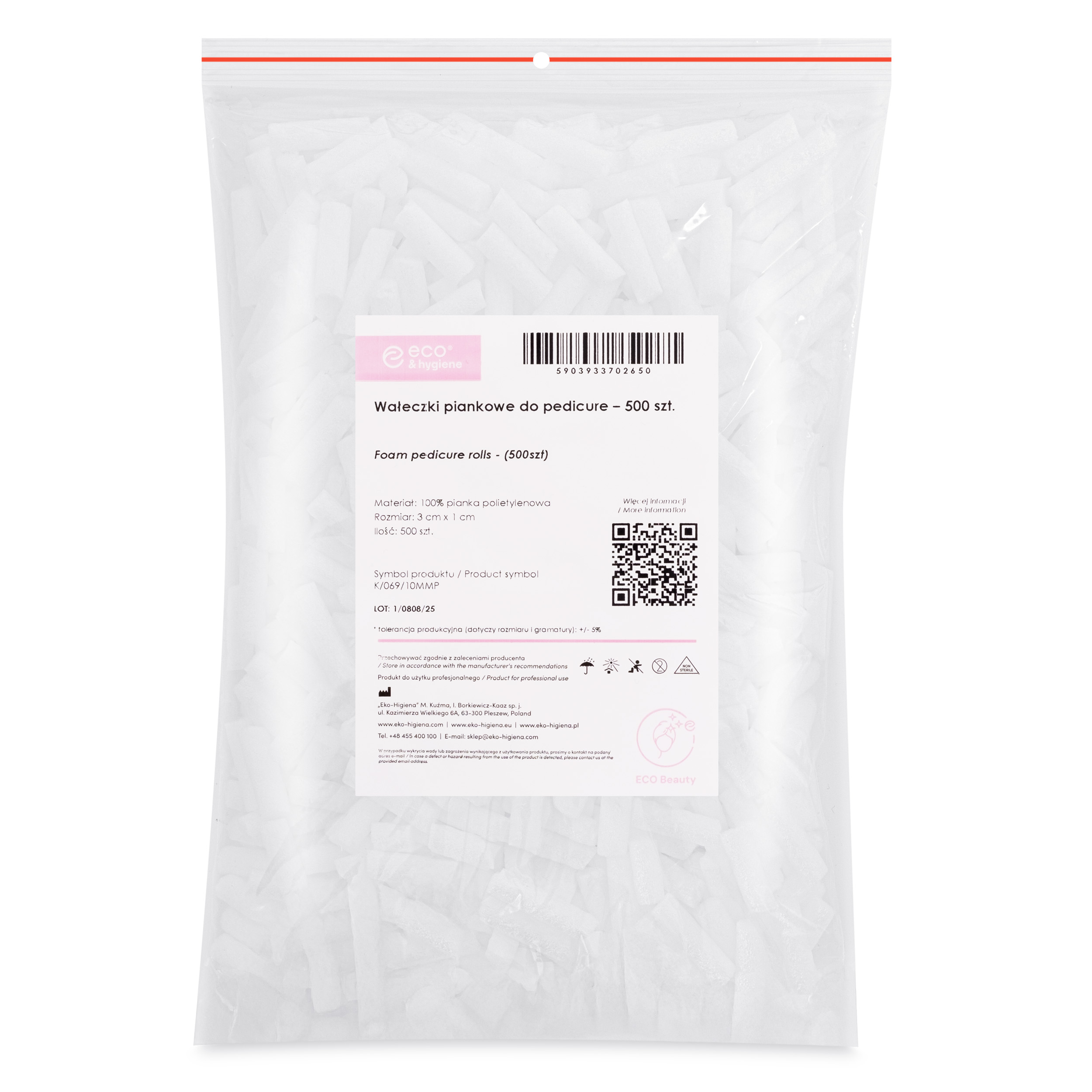 Jednorazové penové valčeky slúžia na rozdeľovanie prstov na nohách pri lakovaní, veľmi užitočné v kozmetických salónoch. Balenie obsahuje 500 kusov.